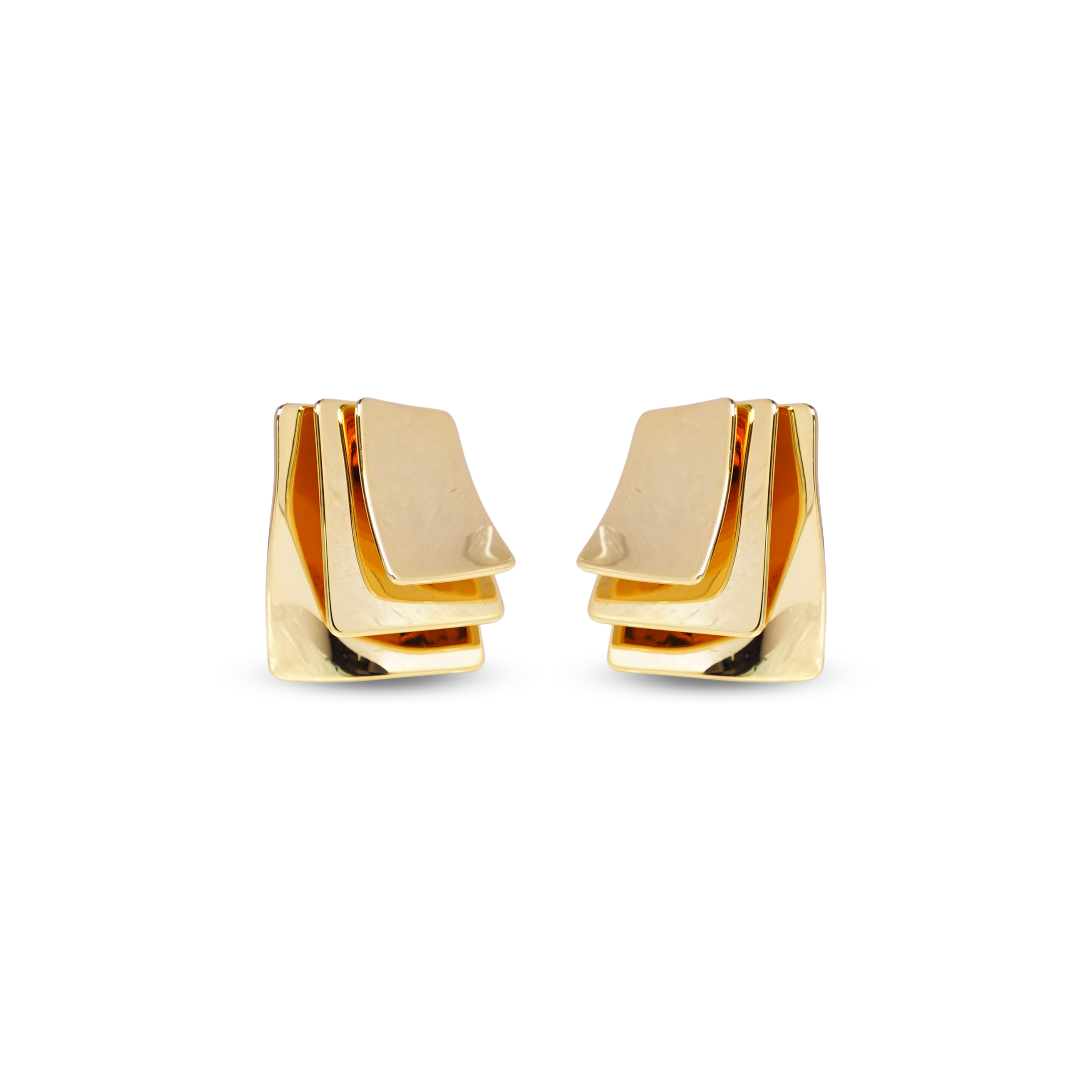 Sleek and sophisticated, our Edge Geometric Studs are for the modern minimalist. With layered, polished gold-tone panels, they reflect light beautifully and add structured drama to your ears – perfect for office to after-hours.