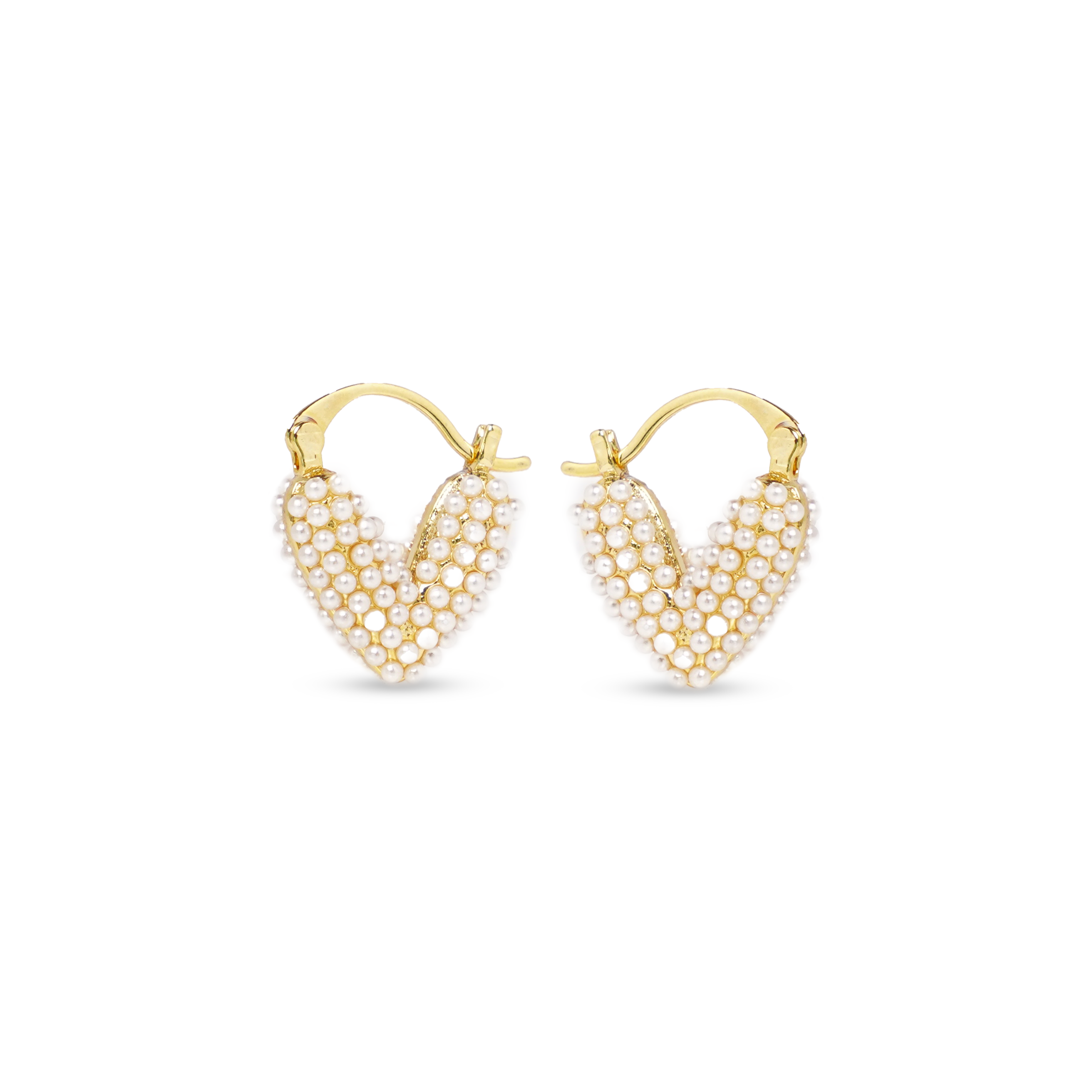 Fall in love with elegance all over again. These V-shaped gold hoops are encrusted with tiny luminous pearls, adding a romantic glow to your look. Lightweight and modern, they’re perfect for brunch dates, celebrations, or gifting something from the heart.