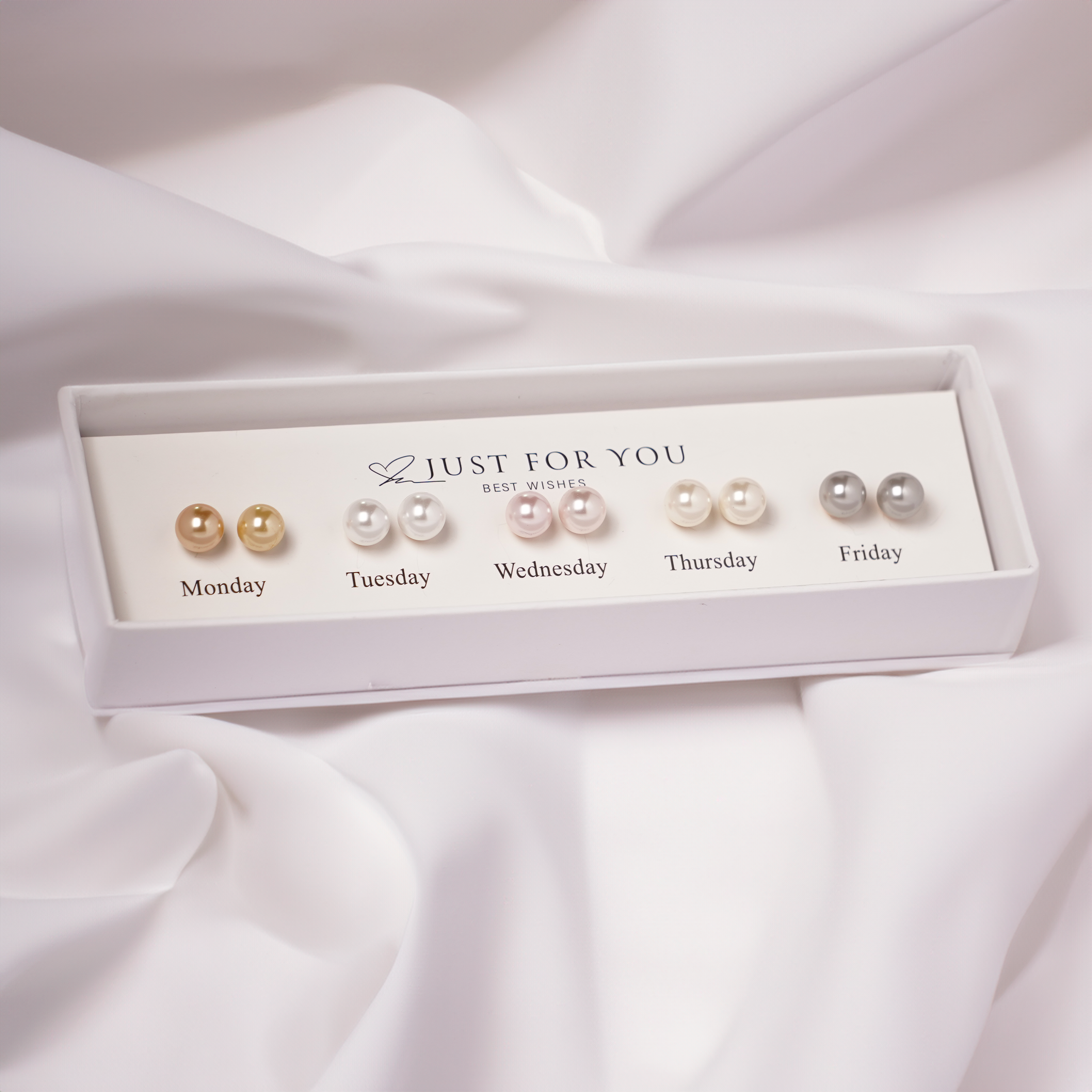 Meet your new weekday staples. This 5-pair pearl stud set features a fresh tone for each day — from classic white to chic champagne. All stainless steel, waterproof, and hypoallergenic for worry-free wear.