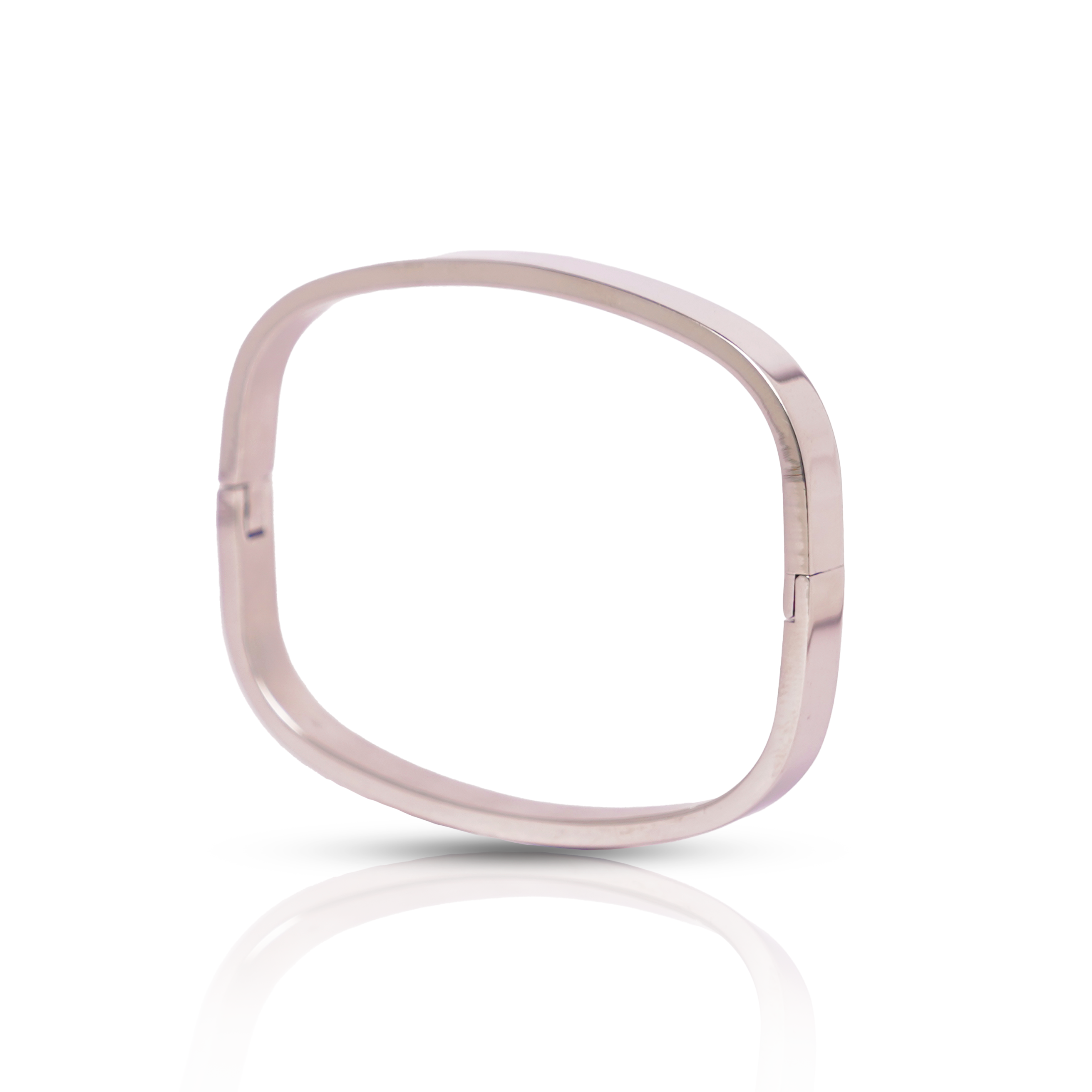Clean lines, modern shape. The Square Bangle in matte silver-tone stainless steel offers an edgy yet polished look. Durable, hypoallergenic, and waterproof — for those who like to keep it cool and classic.